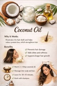 Dry scalp ho to coconut oil kaafi help karta hai.